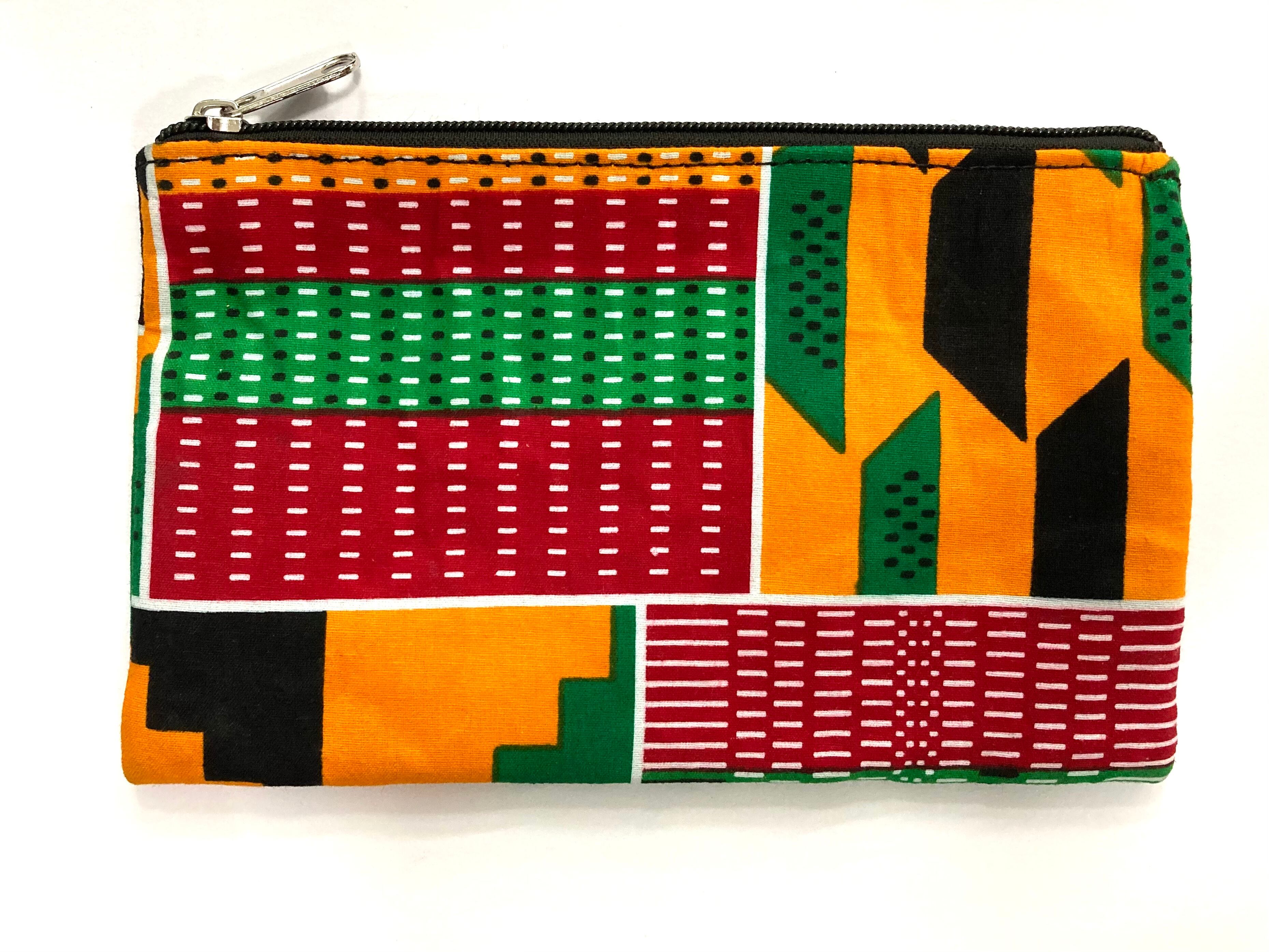 タンザニアのアルーシャ州で有名なファッションブランド「Afrileo Collection」が、キテンゲというアフリカ布を使って作ったポーチです。